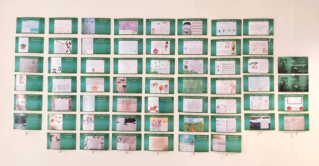Mokykloje eksponuojama solfedžio projektinių-kūrybinių mokinių darbų paroda