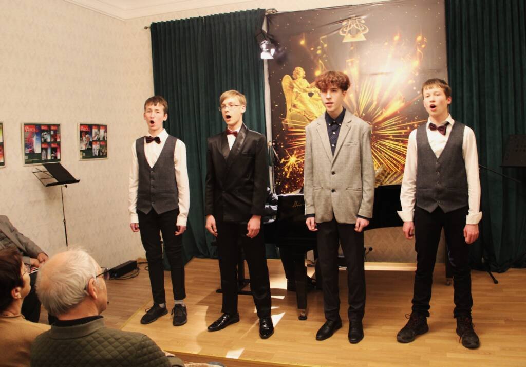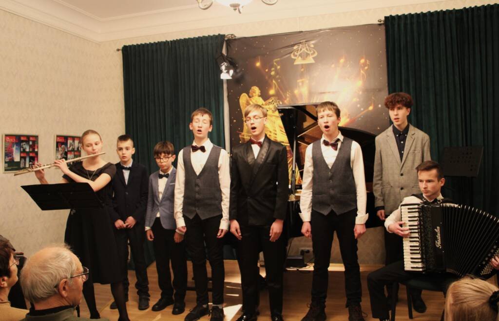 Mokyklos „Lyra“ vaikinų vokalinis ansamblis „Cantus fortis“ ir solinio dainavimo mokiniai koncerte „Liaudies daina – Lietuvos deimantas“