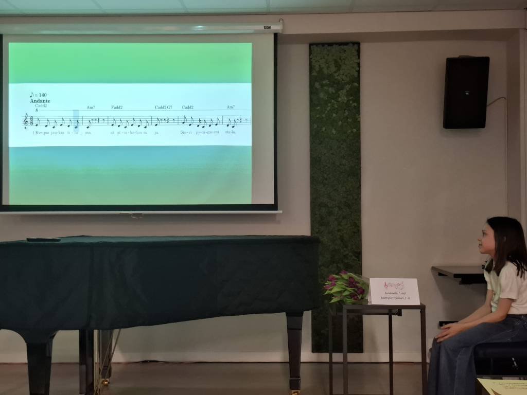 Kovo 10 d. mūsų mokykloje įvyko unikalaus solfedžio ilgalaikio kūrybinio projekto „MANO PIRMOJI DAINELĖ“ uždarymo šventė. Renginio metu virtualiai skambėjo net 56 mokinių sukurtos autorinės kompozicijos, kurias sukūrė mūsų mokyklos II–VIII klasių mokiniai. Skambėjo originalūs jaunųjų kompozitorių kūriniai, buvo demonstruojamos kūrinių iliustracijos.