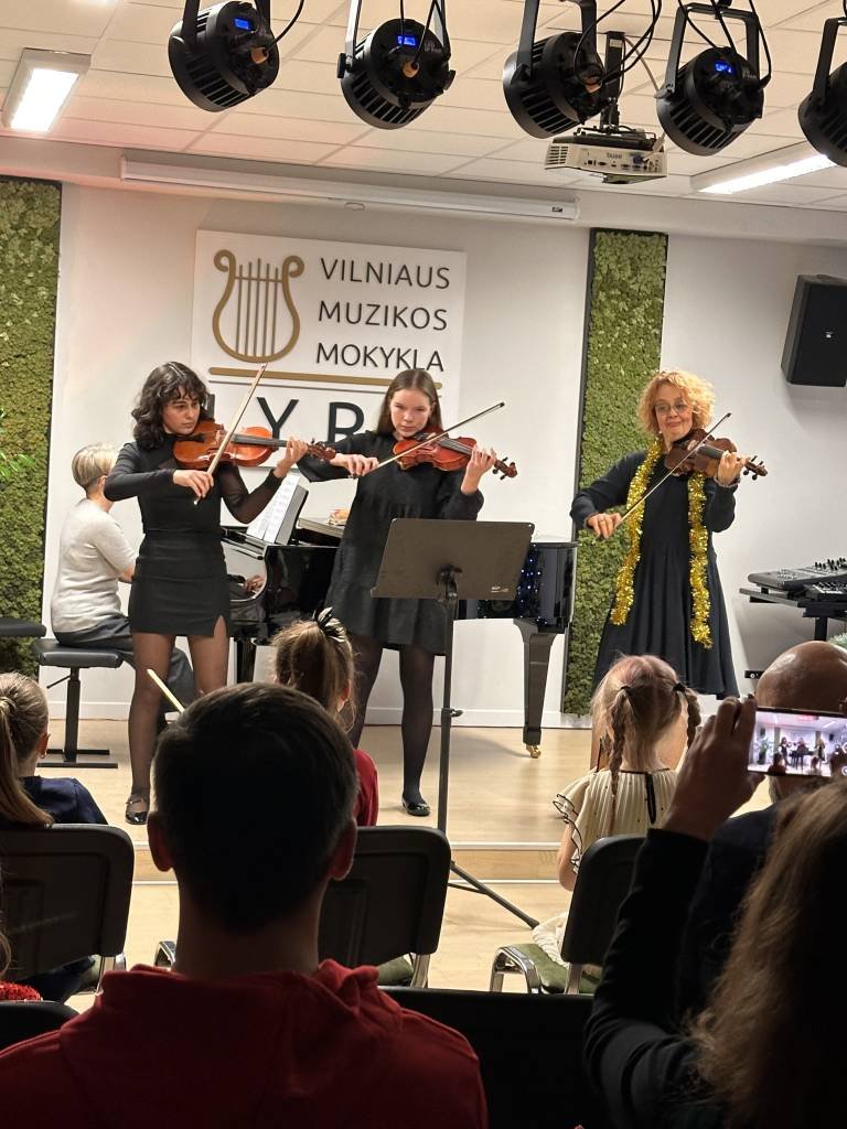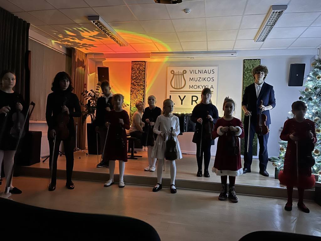 2024 m. gruodžio 18 d. mokyklos koncertų salėje vyko styginių instrumentų specializacijos smuiko mokytojos Nomedos Mikulskienės klasės Kalėdinis renginys.