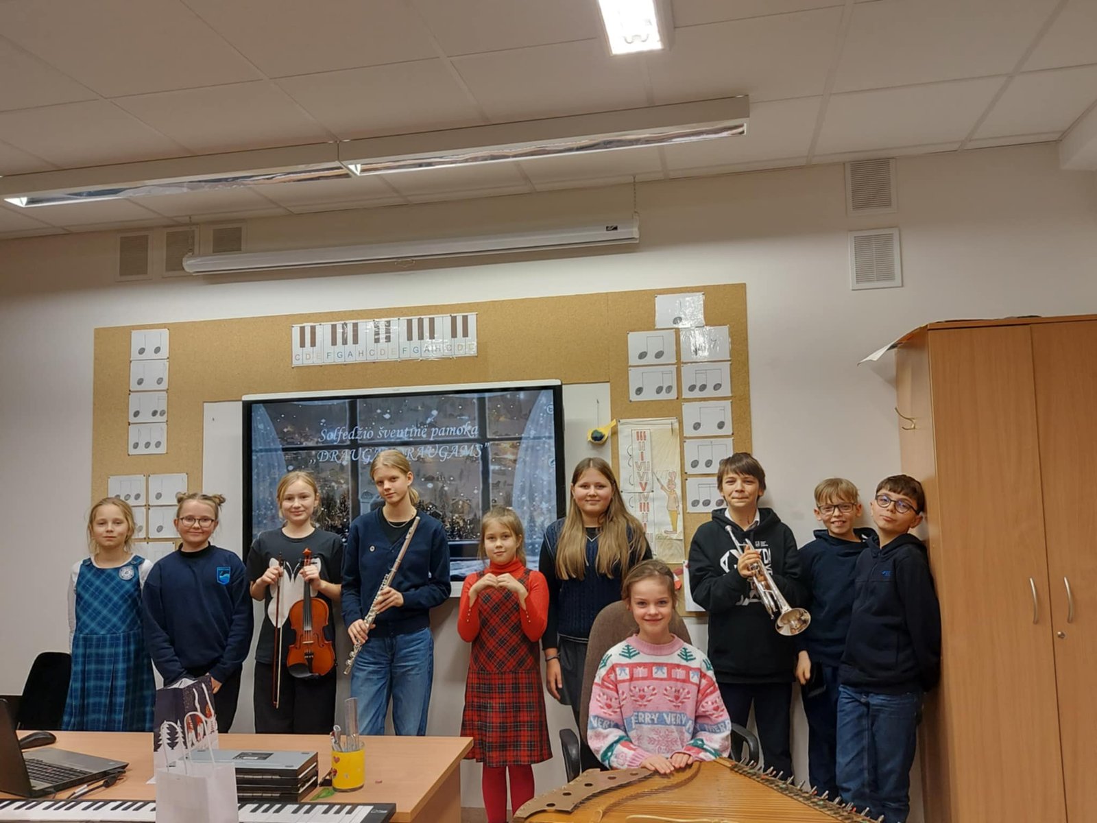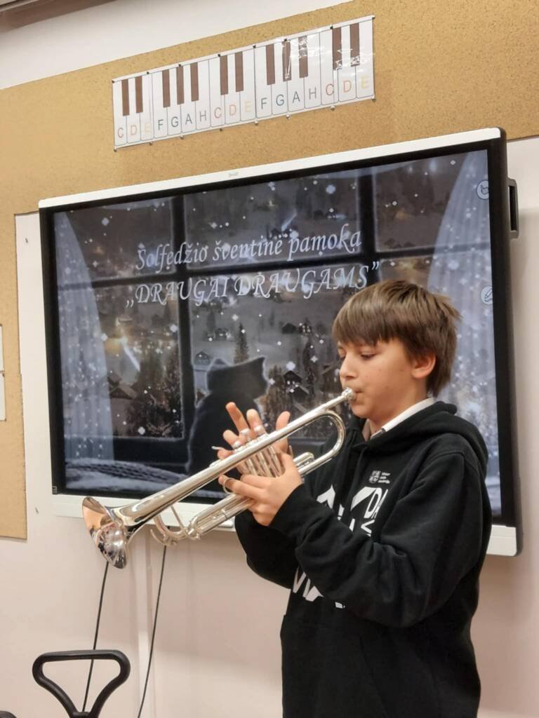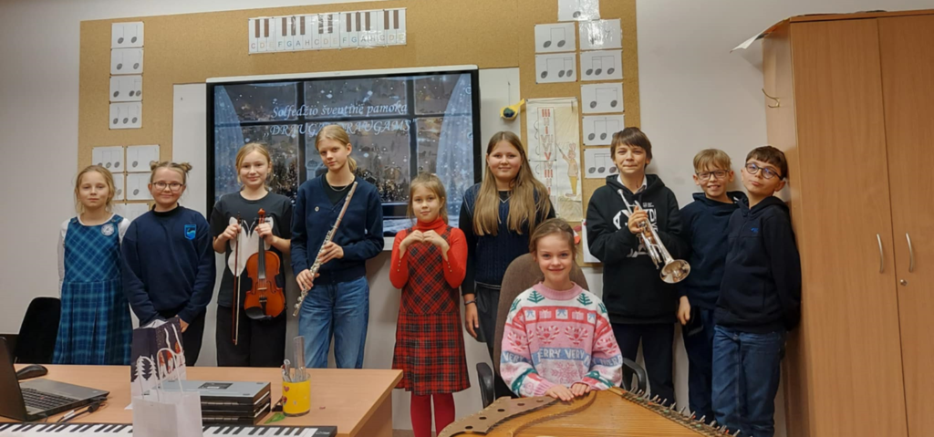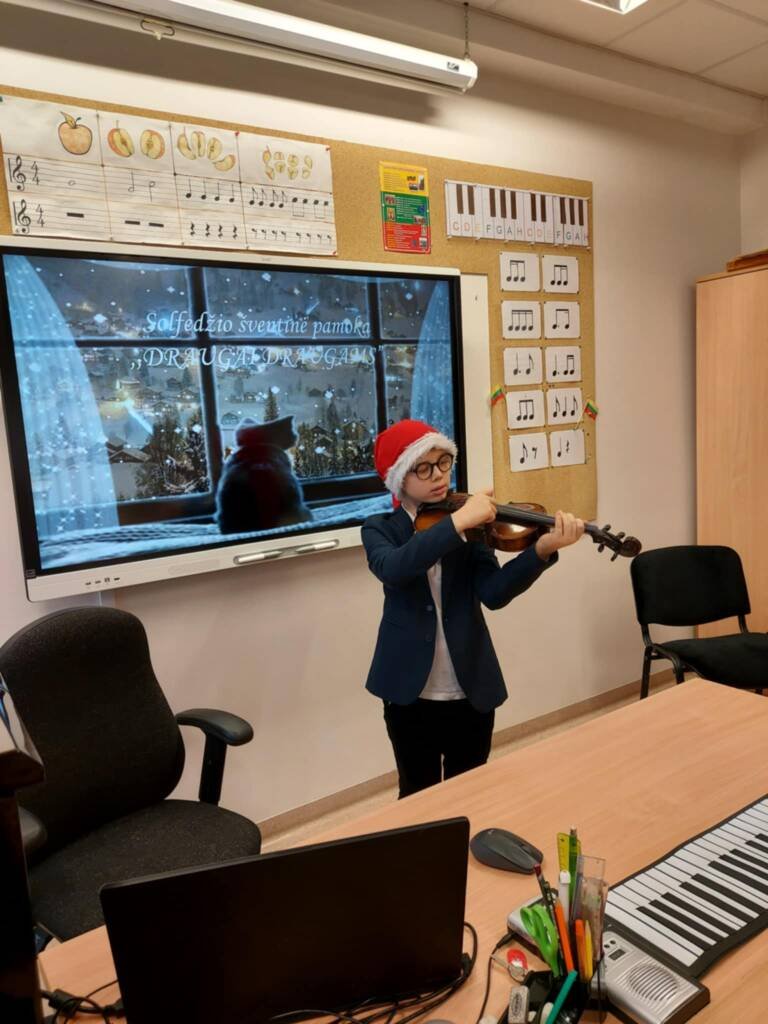 Kiekvienais metais, savaitę prieš Kalėdų atostogas, mūsų solfedžio mokytojos puoselėja gražią tradiciją – organizuoja ypatingas šventines pamokas. Tai – laukiamas renginys, kuriame muzika ir šventinė nuotaika sujungia mokinius, jų tėvelius ir mokytojus į vieną bendrą bendruomenę.