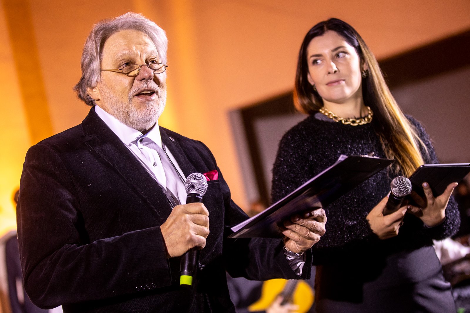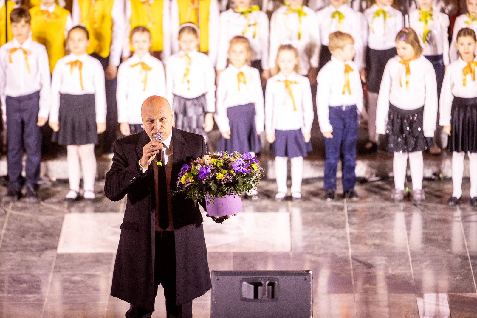 Renginį vedė žavioji televizijos žurnalistė, laidų ir renginių vedėja Eglė Daugėlaitė kartu su lietuvių teatro ir kino aktoriumi, režisieriumi Vytautu Rumšu. Vedėjai kvietė žiūrovus negailėti plojimų atlikėjams ir juos paruošusiems mokytojams.